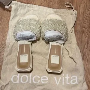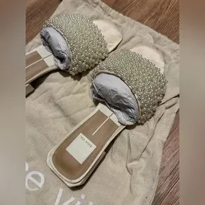 Dolce Vita Pearl Embellished Cream Sandals