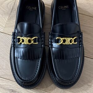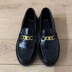 Celine Black Leather Loafers with Gold Hardware size 37 / US 7