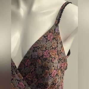DB Studio Floral Print Tiered Aline Rose Floral V-Neck Mini Dress