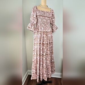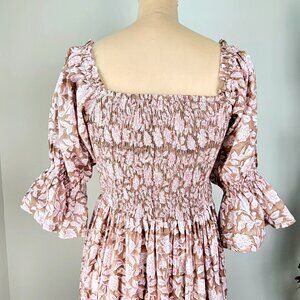 Beachwood Baby | Floral Block Print Smocked Midi Dress | Size M/L
