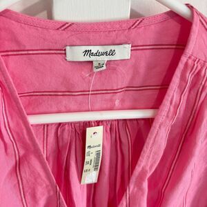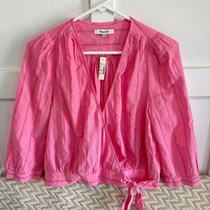 Madewell Women's Wrap Top in Cecelia Stripe Pink White Size Small NWT