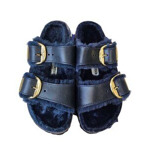 Birkenstock Arizona Big Buckle Shearling Sandals, Midnight Blue, Narrow, 36/5