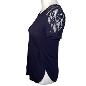 Forever 21 Navy Blue Short Sleeve top Size XS Lace Back and Shoulders