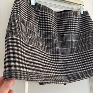 Abercrombie & Fitch Black plaid mini skort. Size medium, wool blend. Adorable for layering over tights! This skort is a wrap style is classic piece that will pair perfectly with a sweater. Length 13”
