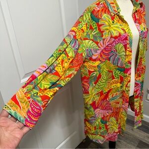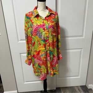Vici Coveted Button Down Shirt Dress colorful tropical Hawaiian summer cover-up
