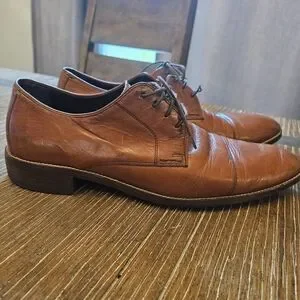 Elegant tan leather oxfords by Cole Haan. Classic design with lace-up closure.