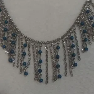 Enhance your style with this chic silver necklace featuring striking blue accents. Perfect for any occasion.