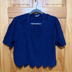 GAP Blue Women's Sloughed Cotton Blouse Top with Flowy Sleeves & Scalloped Hem