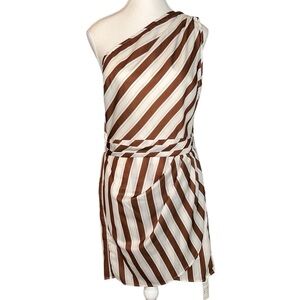 Cupshe Brown and White Asymmetrical One- Shoulder Mini Dress M