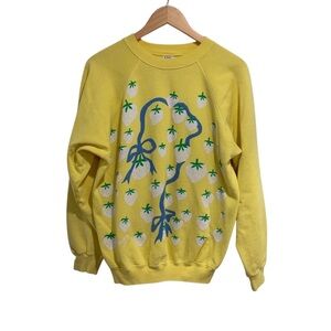 Hanes Vintage 80s Yellow Crewneck Long Sleeve Sweatshirt Strawberry Bow Cotton