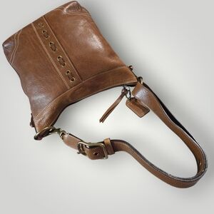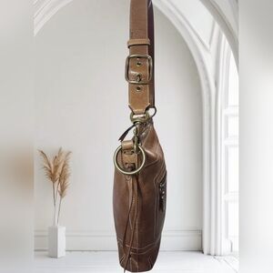 Elegant brown leather shoulder bag with adjustable strap. Perfect for everyday use.