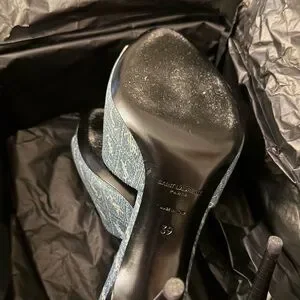 Elegant denim heels with open-toe design. Perfect for stylish outings.