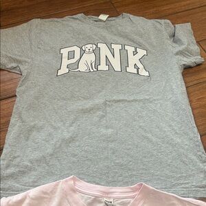 PINK Victoria's Secret Gray and Pink Graphic Tees