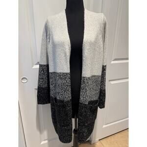 Torrid Black&White Color Block Knit Mid Length Open Cardigan Pockets Knit | EUC