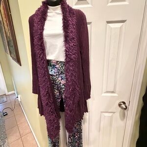 Women's Purple Open Front w/A FauxFur Collar Knitted Cardigan Sweater Midlength