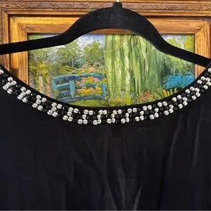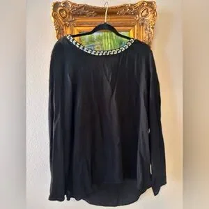 GAP Black Long Sleeve Top with Beaded Neckline