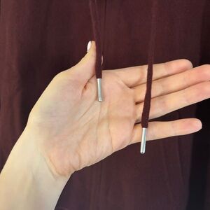 Luxurious burgundy cashmere hoodie with a zip closure. Features a cozy hood. Brand new with tag, comes from smoke free home