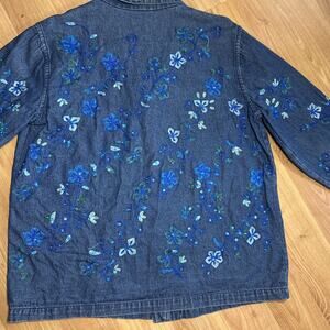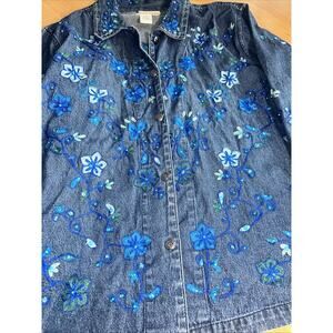 Coldwater Creek Women’s Denim Button Up Embroidered cabincore Boho Western Shirt