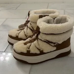 Pajar Cream and Brown Shearling Janie Boots