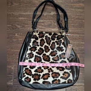 NWT Marco Buggiani Leather and Leopard Print Hide Hobo Shoulder Bag