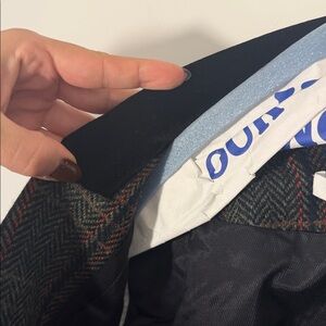Stylish plaid blazer with a classic double-breasted front. Features elegant button details.