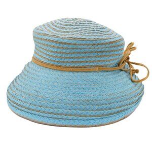 Eric Javits Teal & Brown Straw Wide Brim Hat | Water-Repellent | GUC