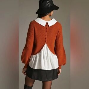 Maeve by Anthropologie Burnt Orange Sweater with White Collar