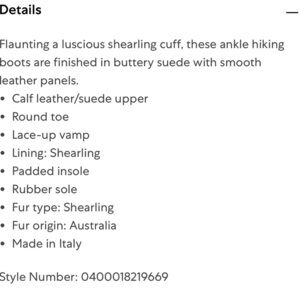 Stunning high end hiking boots with the softest shearling. New WITHOUT tags. Retails for $795.