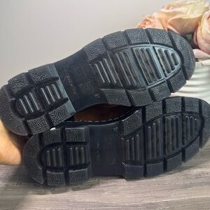 Stylish ankle boots with shearling lining. Brown suede with black leather accents. Lace-up design for a secure fit.