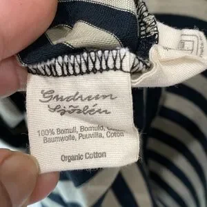 Gudrun Sjoden Essential Classic Black Tan Casual Striped Long Sleeve Shirt Top L