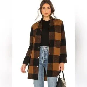 BB Dakota Steve Madden Black Cognac Tan Brown Utility Jacket Shacket Small S