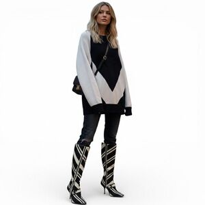 Alexander Wang Cotton Geometric Chevron Oversized Colorblock Sweater Knit Top L