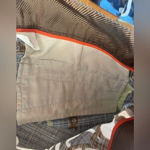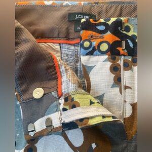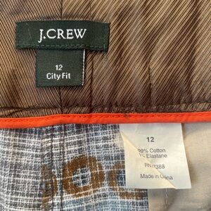 Fun J.Crew cropped gray straight leg capri pants in with blue, orange, green, white, brown paisley pattern from Spring 2008 and marked as City Fit. EUC! Light cotton perfect for spring and summer. Back pockets are currently sewn shut but could be opened with a seam ripper if desired. Measurements of pants laid flat: