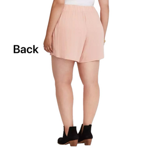 Elevate your wardrobe with these Torrid Front Lace-Up Crepe Shorts in a flattering blush pink. New With Tags Attached; ideal for gift-giving!