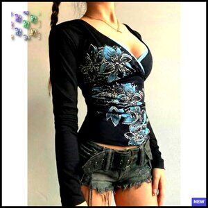 Brand new with tags and in flawless condition — this Y2K fairy grunge long sleeve crop top delivers a vintage-inspired, edgy look perfect for concerts, festivals, or casual streetwear. The floral print and V-neck design create a trendy, flattering silhouette.