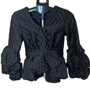 Johanna Ortiz Maia Elegant Chic Black Jacquard Peplum Puff Sleeve Top Size XS