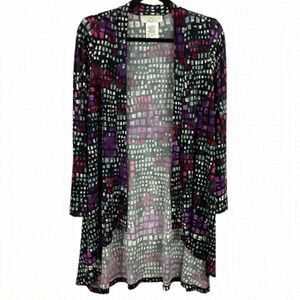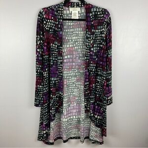Zoe Classic Geometric Longline Open Front Long Sleeve Cardigan Medium Purple