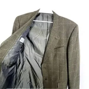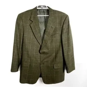 Valentino Wool Cashmere Blazer 44L Brown Windowpane Check Sport Coat Italy
