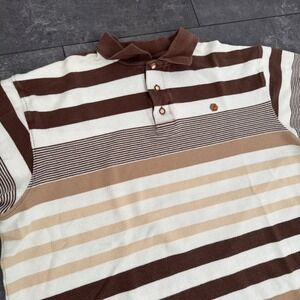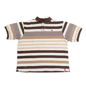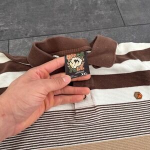Vintage Southpole Mens XXL Striped Polo Shirt Short Sleeve Brown White Y2K