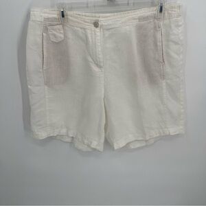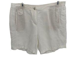 J Jill Womens 18 Tall 100% Linen Shorts White Pockets Button/zip Elastic Waist