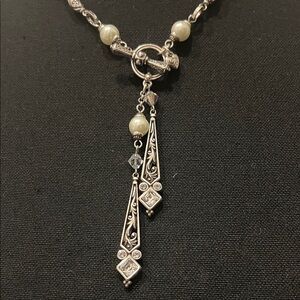 Front fastening, chic silver necklace with pearl and crystal details. Perfect for elegance. No longer available and hard to find!