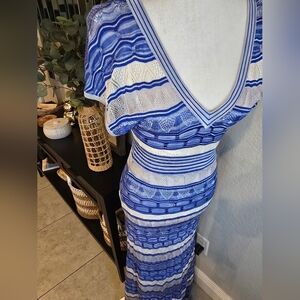 Bebe Women's Lace Trim Stripe Print Wave Knit Crochet Maxi Dress S