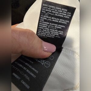 Chic lace maxi dress by bebe. Features a cream and brown pattern. Perfect for elegant occasions.