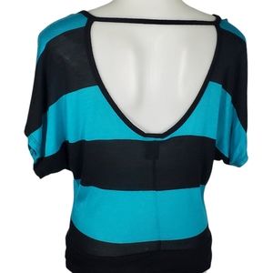 RUE 21 teal and Black Striped Top. Stretchy fit. Very flattering fit with batwing type arms.