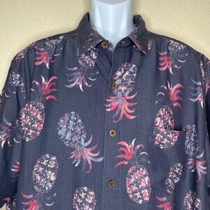 Caribbean Pineapple Shirt Men's 2XT Tall Modal Blend Tropical Hawaiian Navy