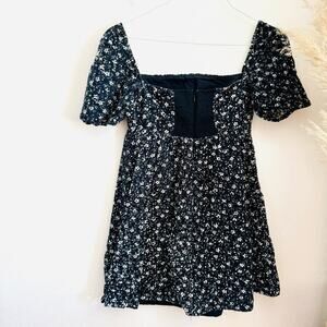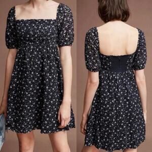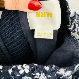 ANTHROPOLOGIE MAEVE Navy Blue White Floral Eyelet Lace Zip Mini Babydoll Dress 6