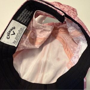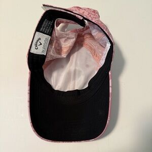 Eye-catching pink cap with unique pattern. Features Callaway logo. Ideal for golf or casual wear.