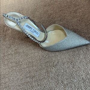 Jimmy Choo Glitter Silver Heels