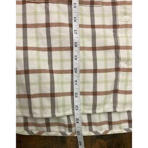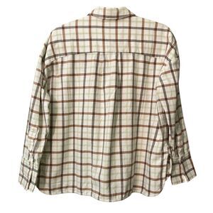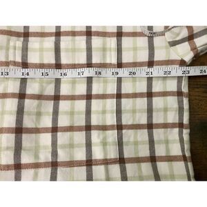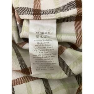 NWT Everlane flannel plaid button front boxy top, size XS, slightly oversized, soft, collared neckline, drop shoulder relaxed fit, 2 front pockets, split bottom hem with a slight high low hem.