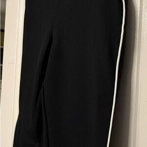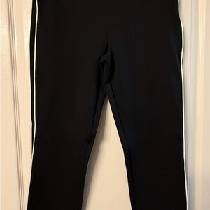 SPANX Black Ankle Pants White Side Stripe Pull-On Sz L 26” Inseam